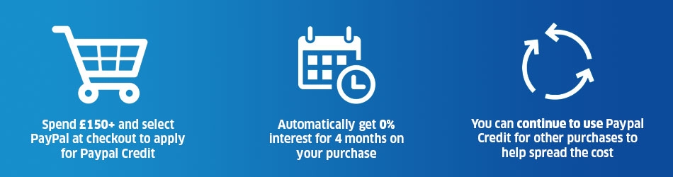 Paypal credit offers great terms including 0% interest for 4 months on all baskets over £150, & it couldn’t be easy to use.