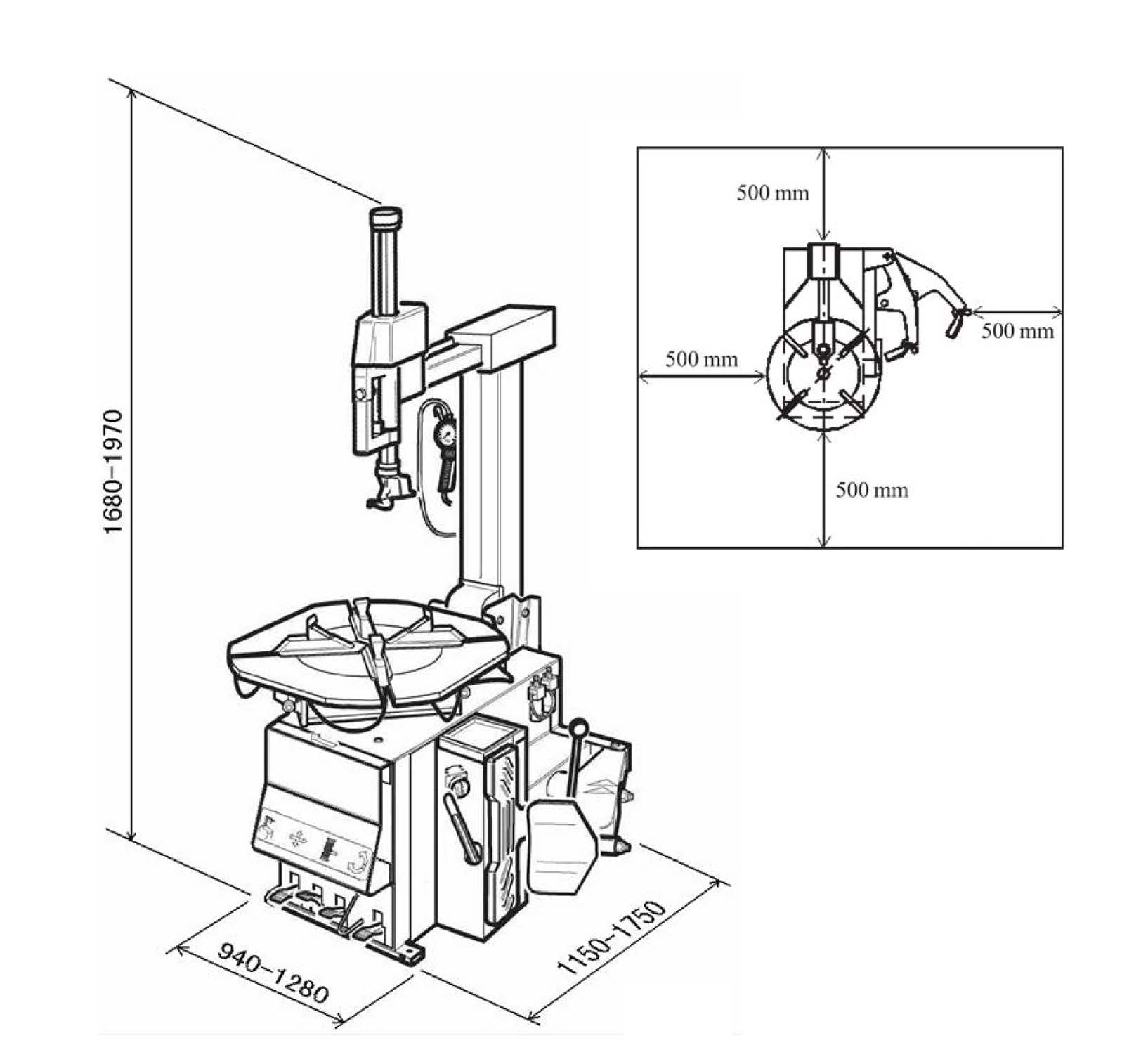 - Tilt-back tyre changer