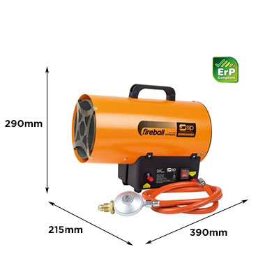 Back to TopThe SIP Fireball 342 Propane Space Heater is an Italian-built unit with a heavy-duty powder-coated finish and an integrated heater safety grille. Ideal for trade and commercial applications.